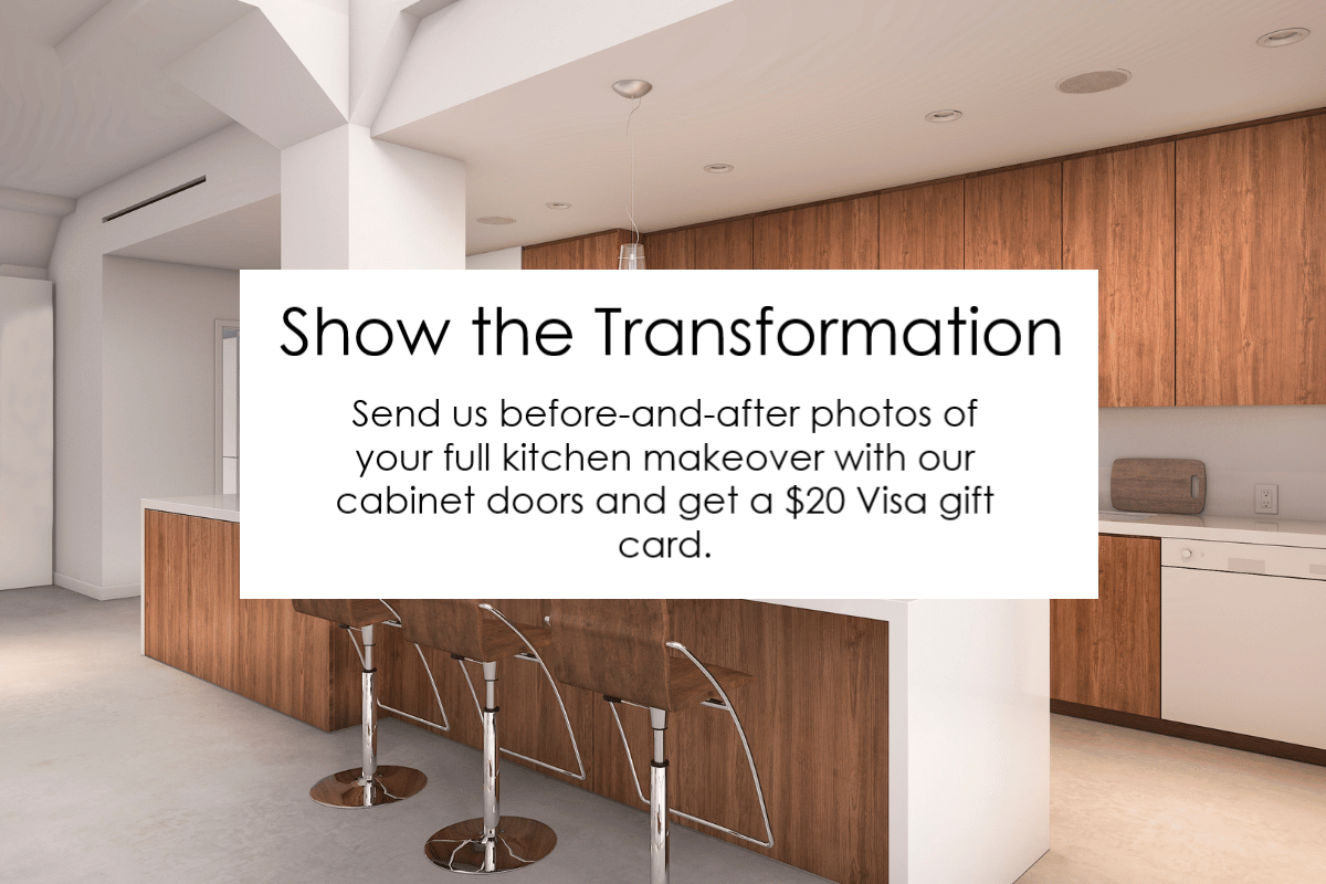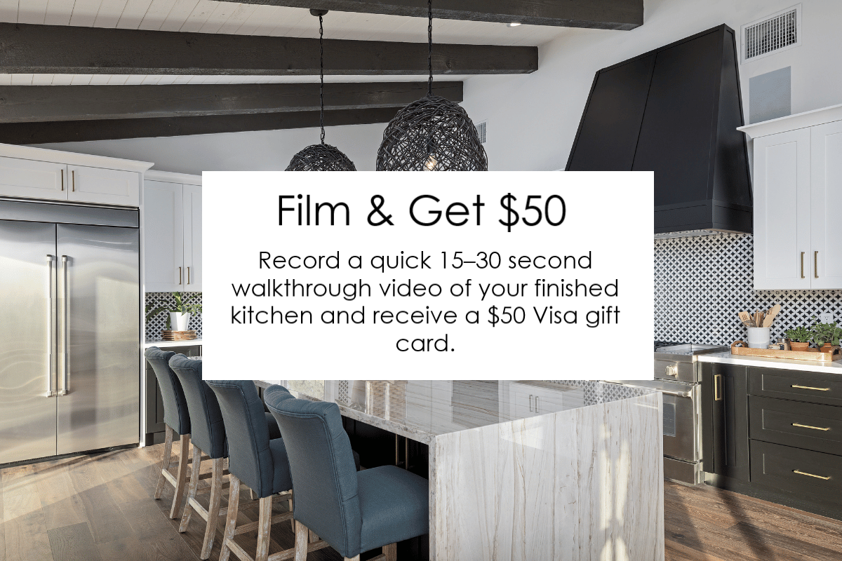 You’ll receive your gift card within 1–2 weeks. Once both your Google review and project photo or video have been submitted, a Cabinetdoors.com associate will reach out to confirm whether you’d like your gift card sent digitally or mailed to you.